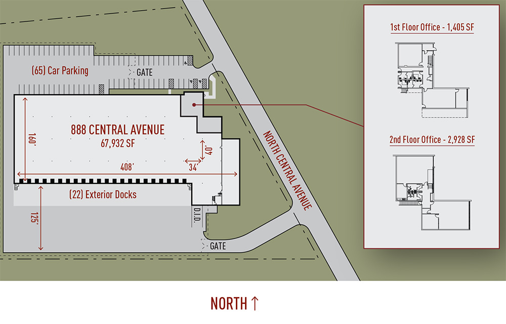 - Office SF: ±4,333 SF (1st Floor - 1,405 SF; 2nd Floor: 2,928 SF)
